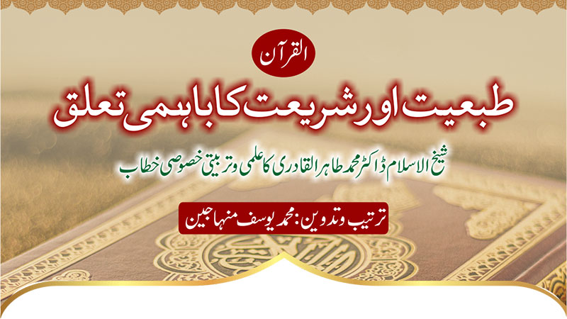یہی وجہ ہے کہ اللہ رب العزت نے اس آیت کریمہ میں پہلے طبیعت کی بات کی اور بعد میں شریعت کی بات کی۔ جب فرمایا خذ العفو، معاف کرنے والے بنو تو یہ بھی احکامِ شریعت میں سے ہی ایک حکم ہے مگر ایک ایسا حکم ہے جو طبیعت کو بدل رہا ہے، طبیعت کی تنگی دور کر رہا ہے اورطبیعت سے غصہ نکال رہا ہے۔ جس آدمی کی طبیعت میں غصہ ہے، وہ دوسرے کو معاف نہیں کر سکتا۔ اگر وہ بظاہر زبان سے معاف کر بھی دے مگر اس کا دل معاف نہیں کر رہا ہوگا، اس لیے کہ اس کے اندر گھٹن ہے۔ پس جس بندے کی طبیعت میں گھٹن ہے، وسعت نہیں ہے تو اس کا دین کی تبلیغ کرنا کوئی بھی اثرات مرتب نہیں کرتا۔