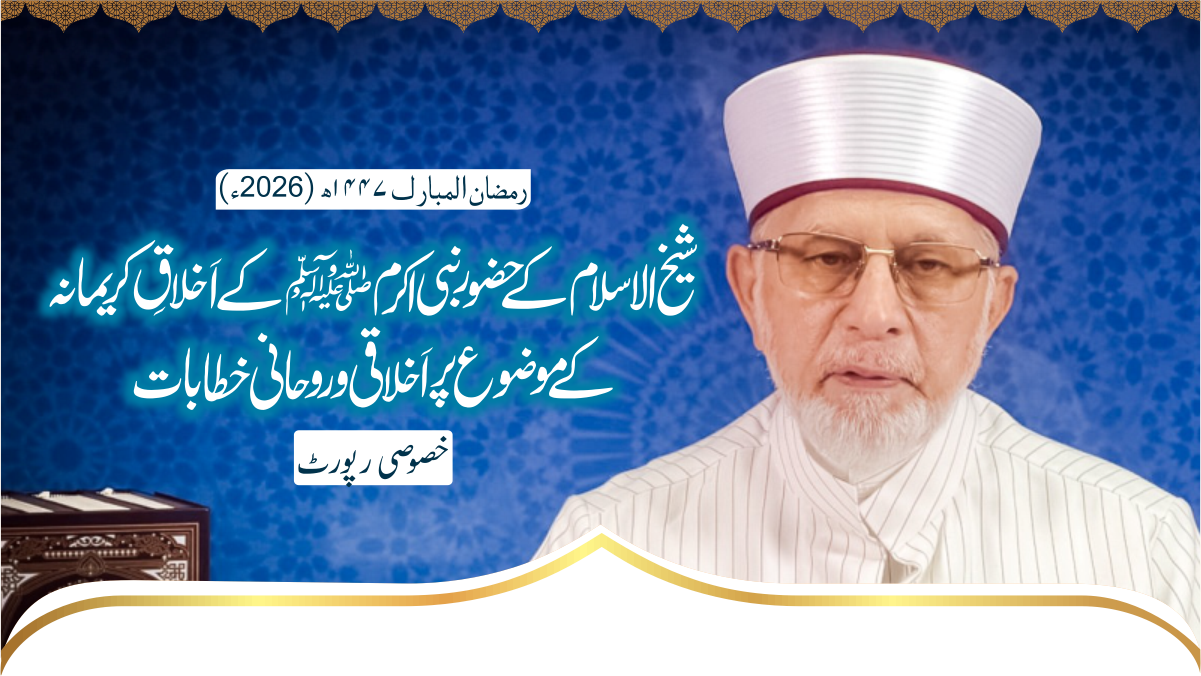 ماہ رمضان المبارک 1447ھ (2026ء) کے آخری عشرہ میں شیخ الاسلام ڈاکٹر محمد طاہرالقادری نے حضور نبی اکرم ﷺ کے اخلاقِ کریمانہ کے موضوع پر اخلاقی و روحانی خطابات ارشاد فرمائے۔ ان فکر انگیز اور روح پرور مجالس میں حضور نبی اکرم ﷺ کے اَخلاقِ کریمانہ کی روشنی میں ہمارے شخصی، خاندانی اور سماجی و معاشرتی رویوں کو سنوارنے کا لائحہ عمل نہایت عمدگی سے بیان کیا گیا۔
